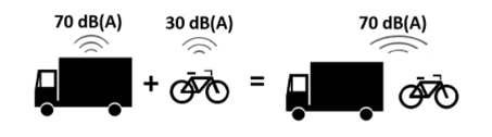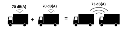dB-skalaen er en logaritmisk eller relativ skala. Det betyder, at når man fordobler lydtrykket (energien i lyden) øges med 3 dB. Et lydniveau på 100 dB(A) indeholder således dobbelt så meget energi som et lydniveau på 97 dB(A). Grunden, til at man måler lyd på denne måde, er, at øret (og hjernen) opfatter lyd som logaritmen til lydtrykket snarere end selve lydtrykket.