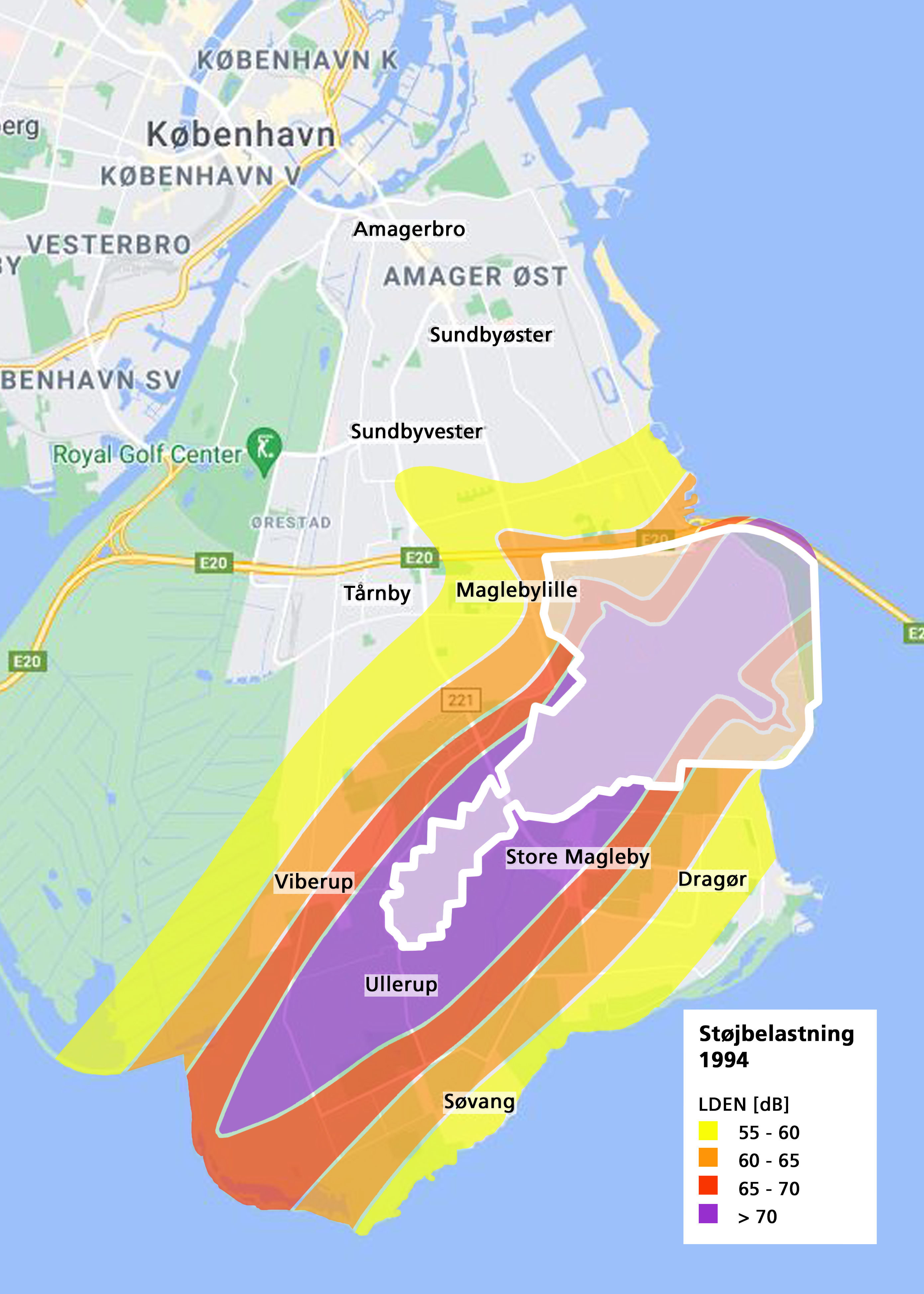 Lufthavnens støjbelastning af omgivelserne er faldet gennem årtier - og er faktisk mere end halveret de sidste 25 år, se følgende afsnit. For at give et indtryk af lufthavnens støjbelastning før og nu har vi taget udgangspunkt i 1994, men vi kunne have valgt et andet år et par årtier tilbage.